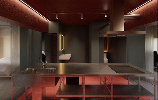 より精密な演算により、反射・屈折・影・カラーブリーディングを高精度でシミュレートします。金属調の素材が多い建物の外観やライティングのイメージを確認したいインテリアのレンダリングに採用されます。一般的にレイトレースはレンダリングコストが大きくなる傾向があります。ZKI designではレンダリングを高速化するテクニックにより、コンセプトデザイン段階からスピーディーなレイトレースレンダリングを実現します。